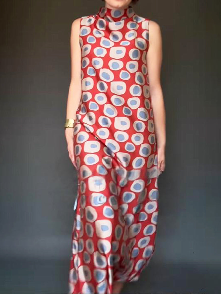 Artistic Polka Dot Print Satin Maxi Dress