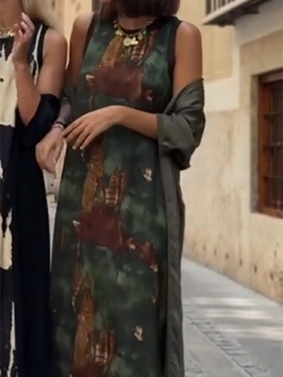 Artistic Watercolor Print Dress and Cardigan Two-piece Set