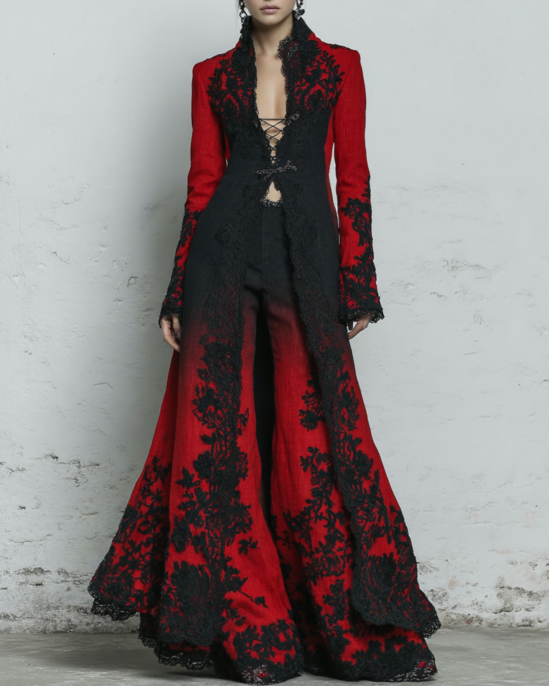Halloween Gradient Lace Panel Blazer & Pants Two-Piece Set 9d48