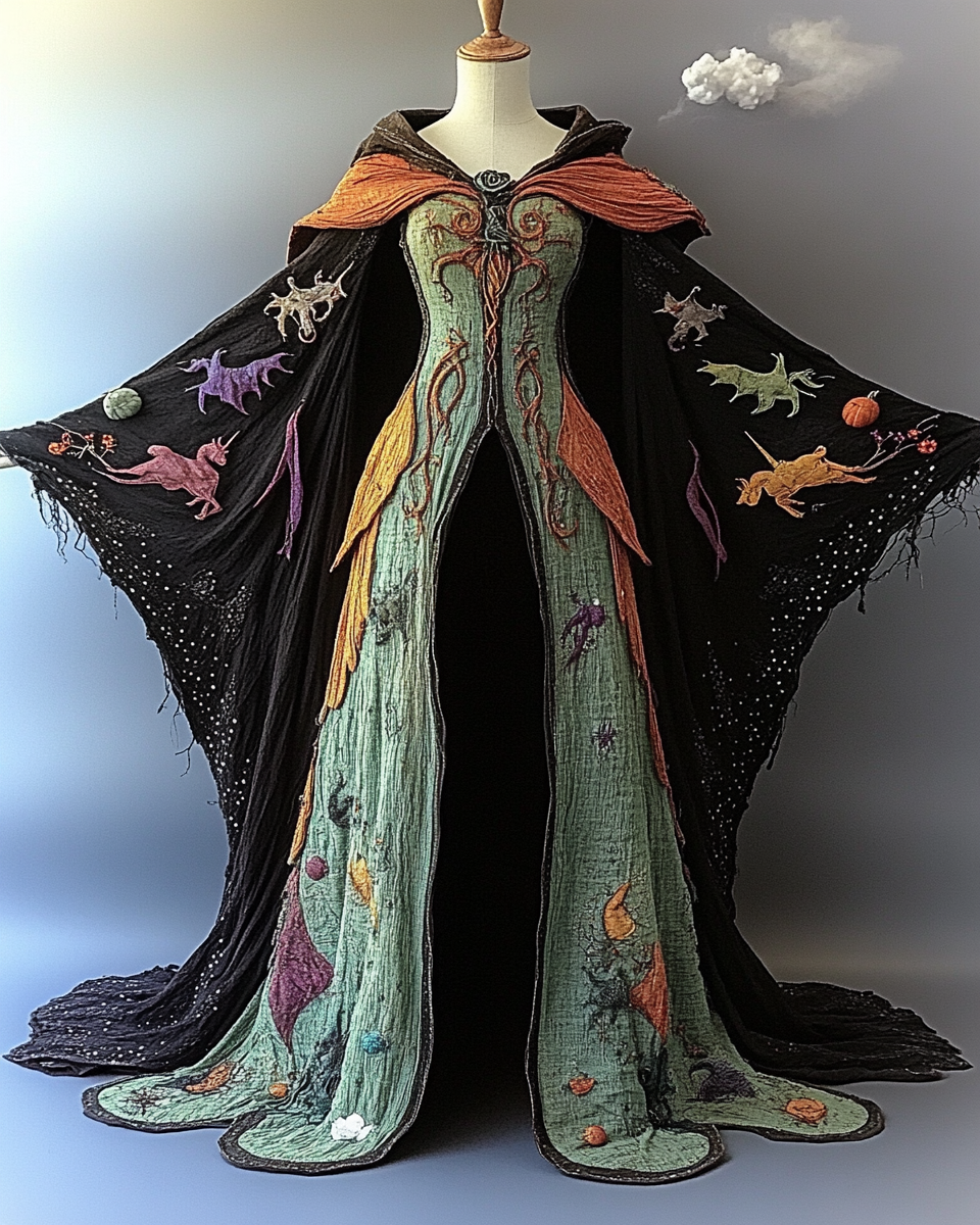 Halloween Theme Party Dark Loose Wide-Sleeved Cape Dress 062a