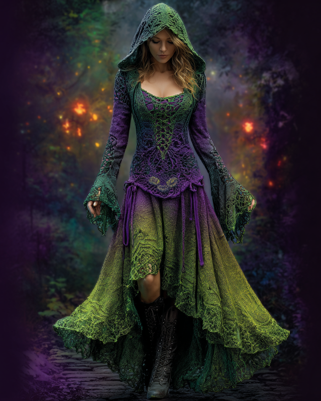 Halloween themed gradient irregular crochet knitted hooded dress 9de2