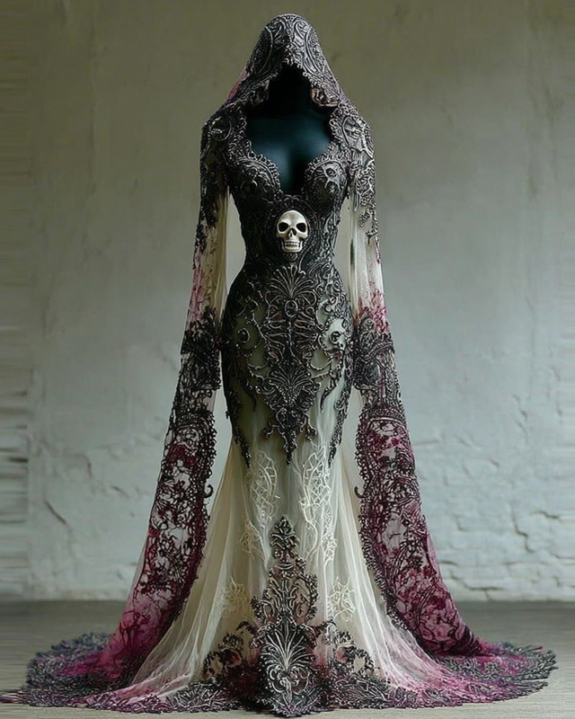 Halloween Themed Gradient Lace Patchwork Dress 3a59