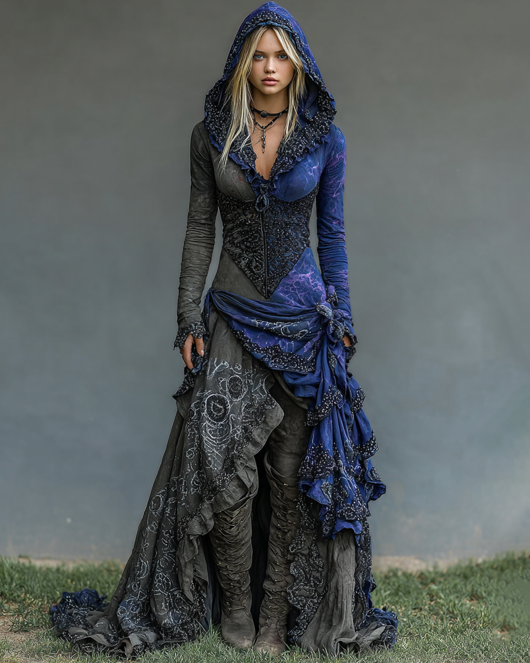 Halloween Themed Irregular Ruffle Lace Patchwork Hooded Dress a50f