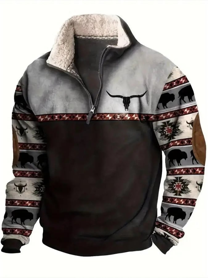 Men'S Retro Contrast Fur Collar Zipper Casual Sweatshirt