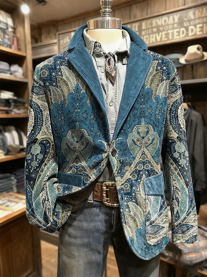 Men's Retro Western Style Art Pattern Casual Blazer