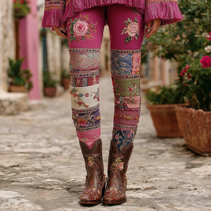 Vintage Halloween Black And Purple Rose Art Stitched Cozy Leggings