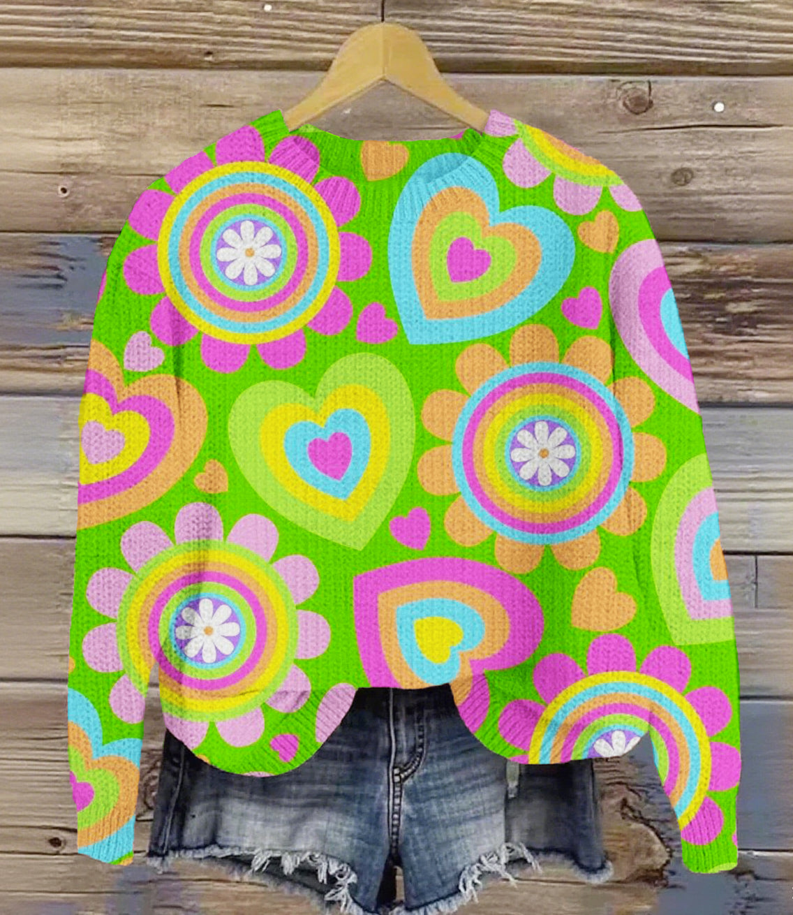 Vintage Lovely Flower Art Print Knit Pullover Sweater