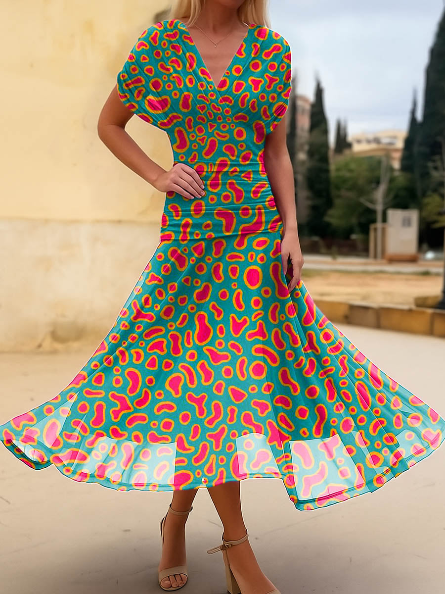 Women's Abstract Pattern Art Print Casual Cotton Dress