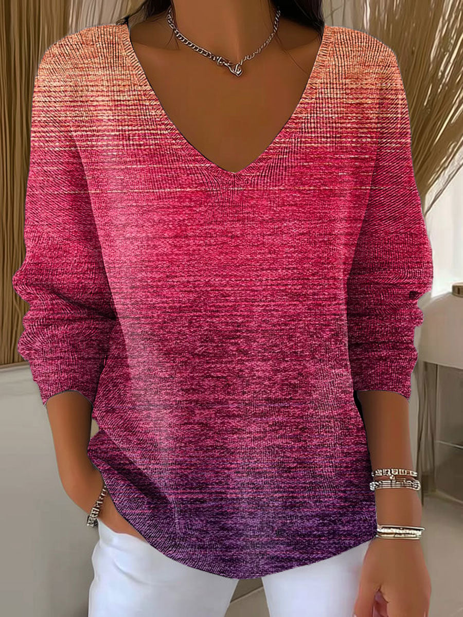 Women's Gradient Striped Casual Pullover Sweater