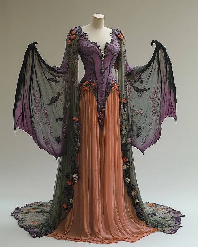 Women's Halloween Bat Wing Sleeve Contrast Cape Dress 02eb