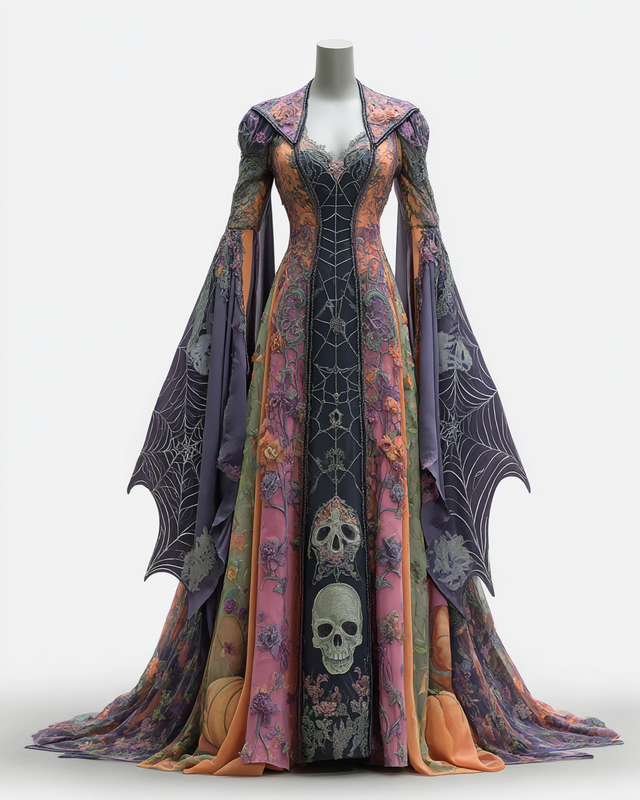 Women's Halloween Bat Wing Sleeve Contrast Cape Dress 0e49