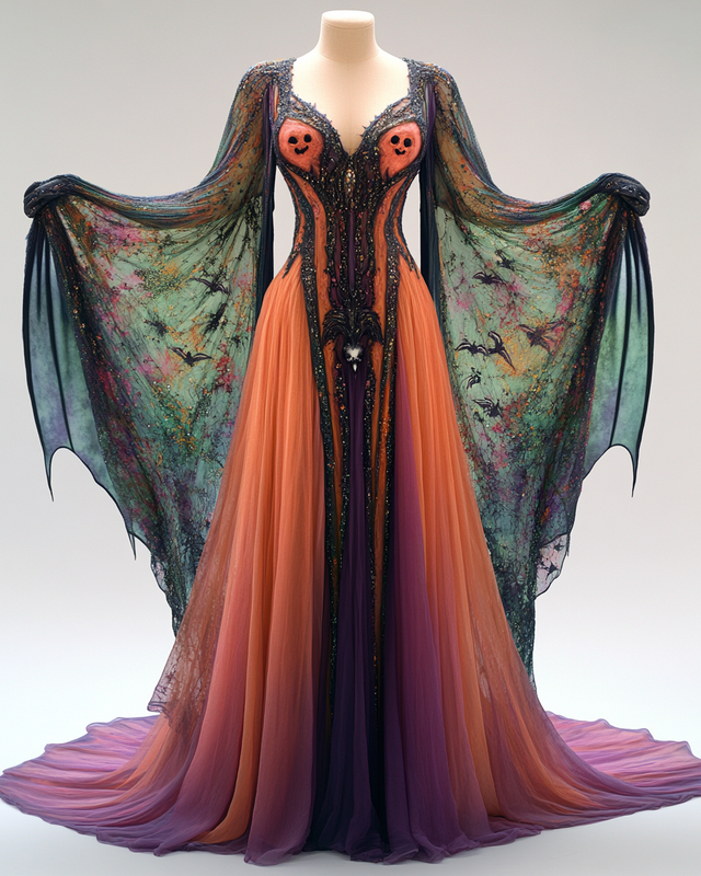 Women's Halloween Bat Wing Sleeve Contrast Cape Dress 1b16