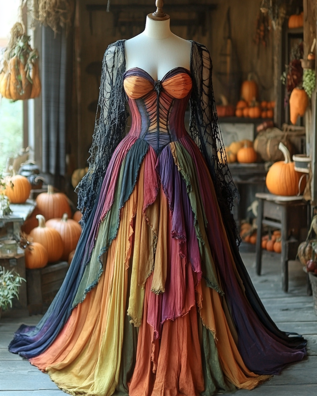 Women's Halloween Bat Wing Sleeve Contrast Cape Dress 29d5