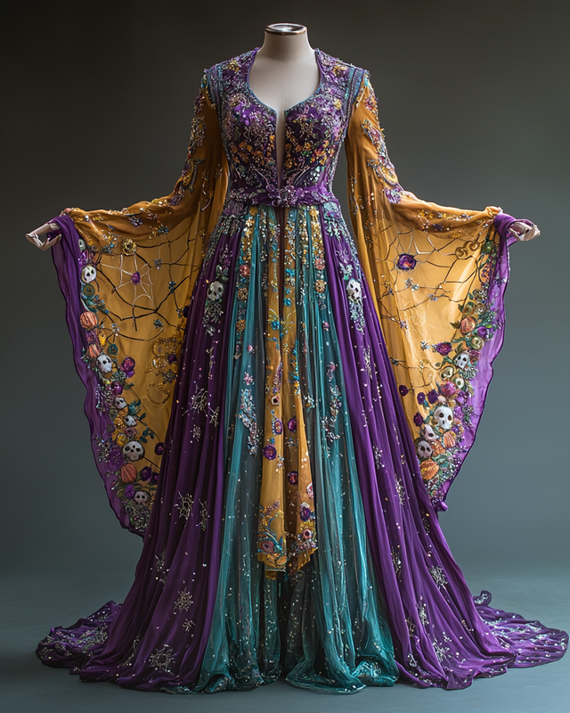 Women's Halloween Bat Wing Sleeve Contrast Cape Dress 3c5f