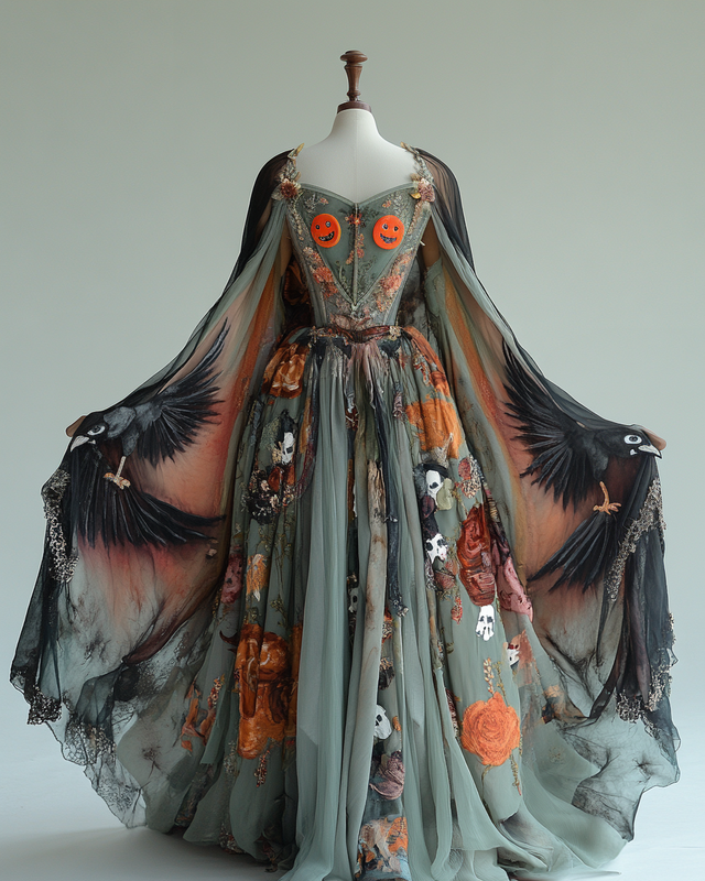 Women's Halloween Bat Wing Sleeve Contrast Cape Dress 7803