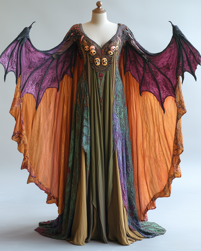 Women's Halloween Bat Wing Sleeve Contrast Cape Dress da7e