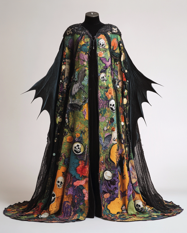Women's Halloween Bat Wing Sleeve Contrast Color Exaggerated Cape 1761