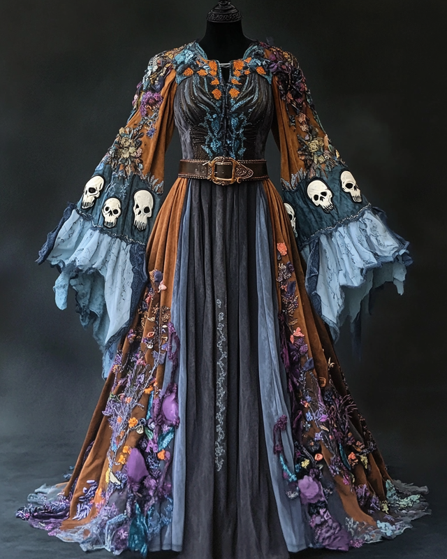 Women's Halloween Bat Wing Sleeve Contrast Color Exaggerated Cape Dress 41c4