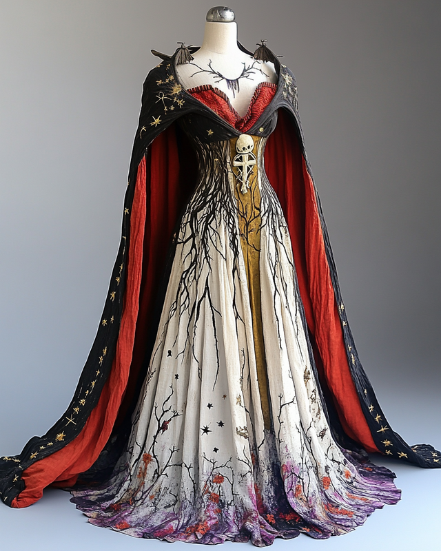 Women's Halloween Bat Wing Sleeve Contrast Color Exaggerated Cape Dress 7351