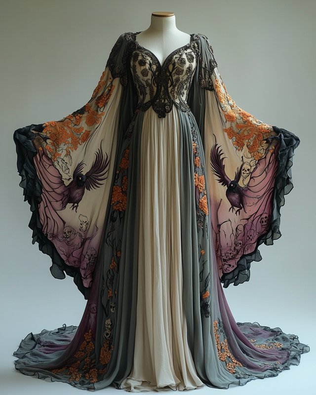 Women's Halloween Bat Wing Sleeve Contrast Dress 3b3b