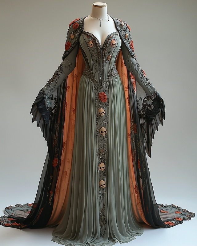 Women's Halloween Bat Wing Sleeve Contrast Dress 3bd4