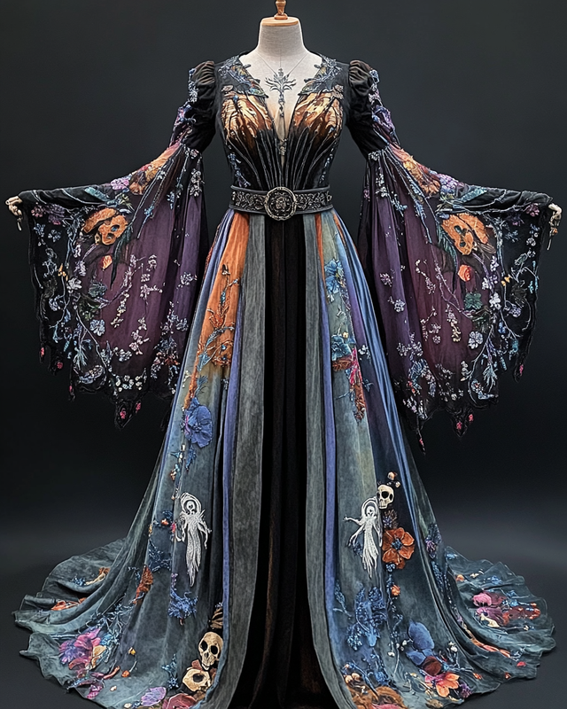 Women's Halloween Bat Wing Sleeve Contrast Dress 4f91