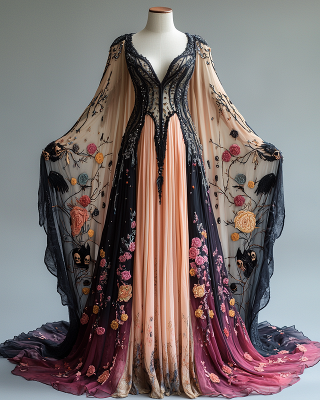Women's Halloween Bat Wing Sleeve Contrast Dress 5190