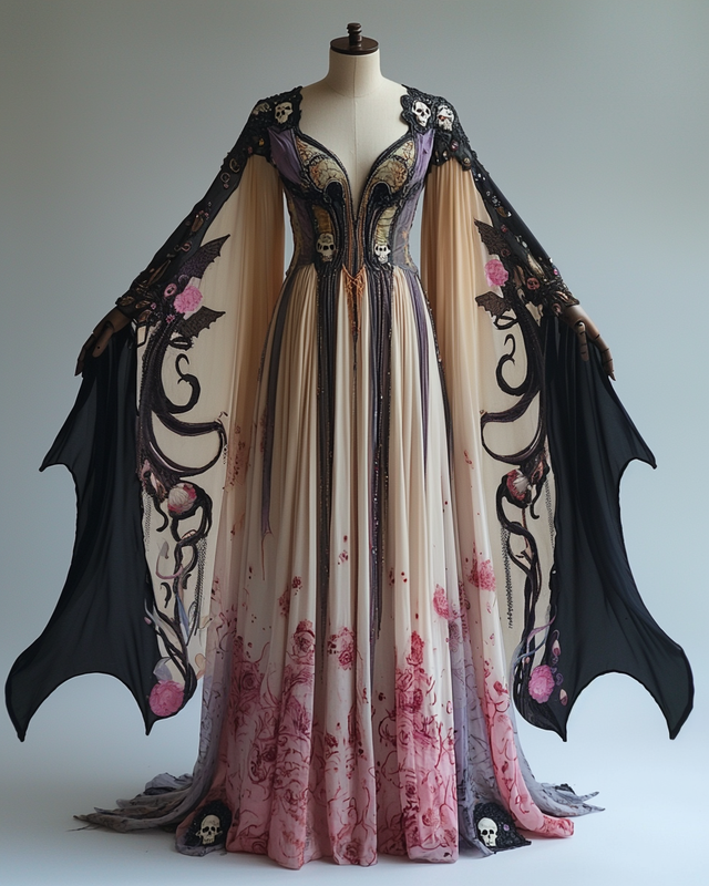 Women's Halloween Bat Wing Sleeve Contrast Dress d450