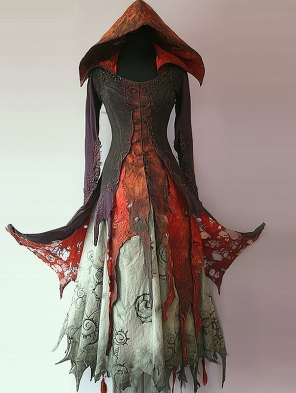 Women's Halloween exaggerated contrasting color cape dress 11e0