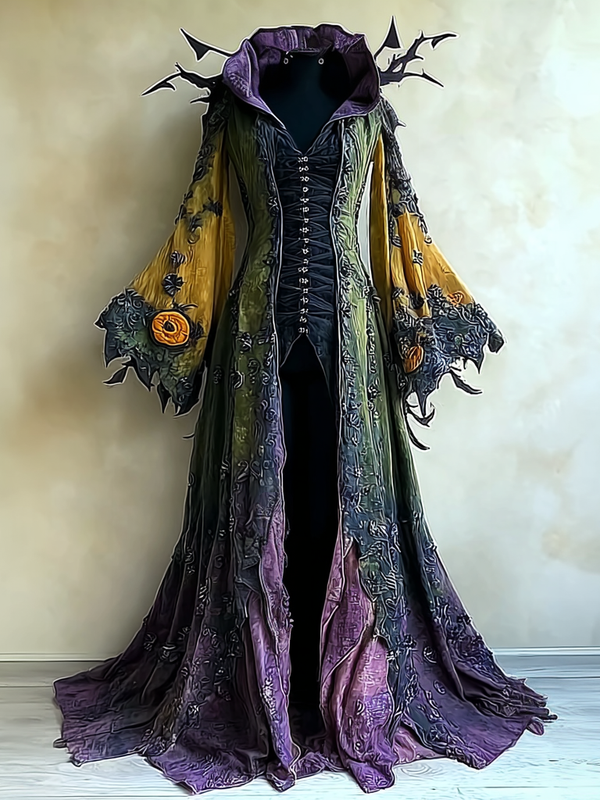 Women's Halloween exaggerated contrasting color cape dress 12fa