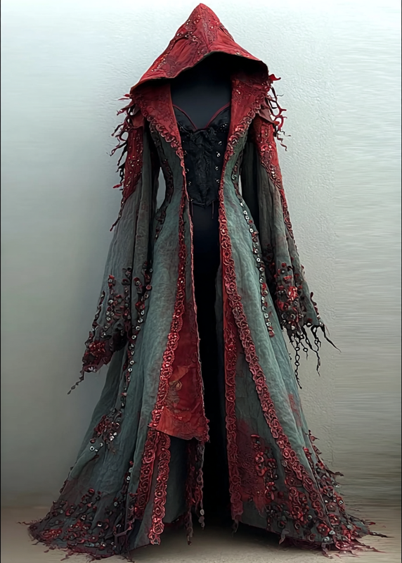 Women's Halloween exaggerated contrasting color cape dress 7777