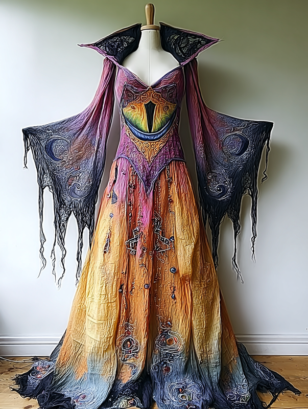 Women's Halloween exaggerated contrasting color cape dress 970f