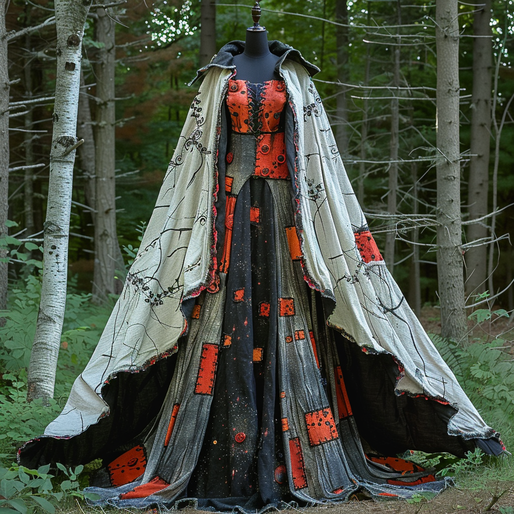 WOMEN'S HALLOWEEN PARTY CONTRAST COLOR LOOSE WIDE SLEEVE CAPE DRESS 0d52