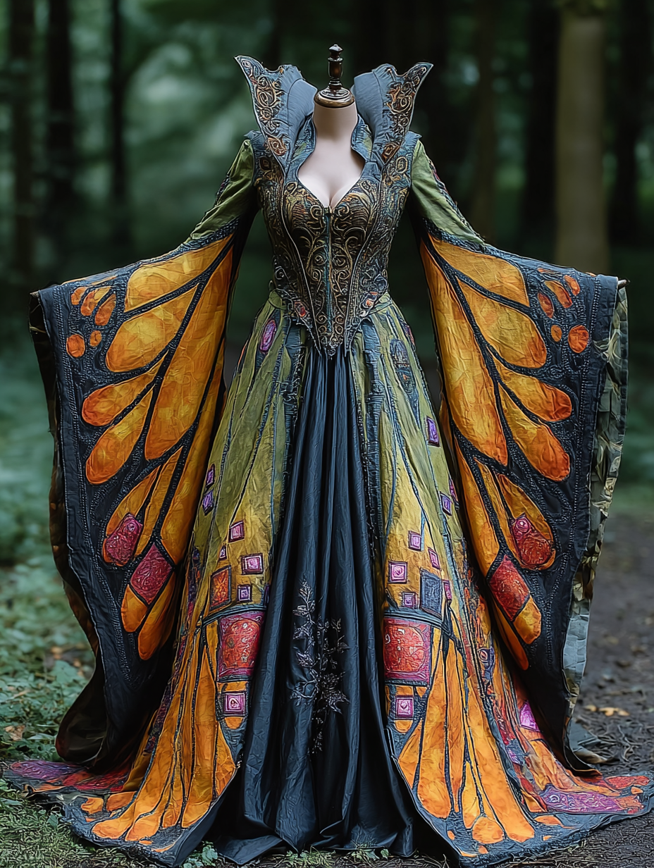 WOMEN'S HALLOWEEN PARTY CONTRAST COLOR LOOSE WIDE SLEEVE CAPE DRESS 3eed