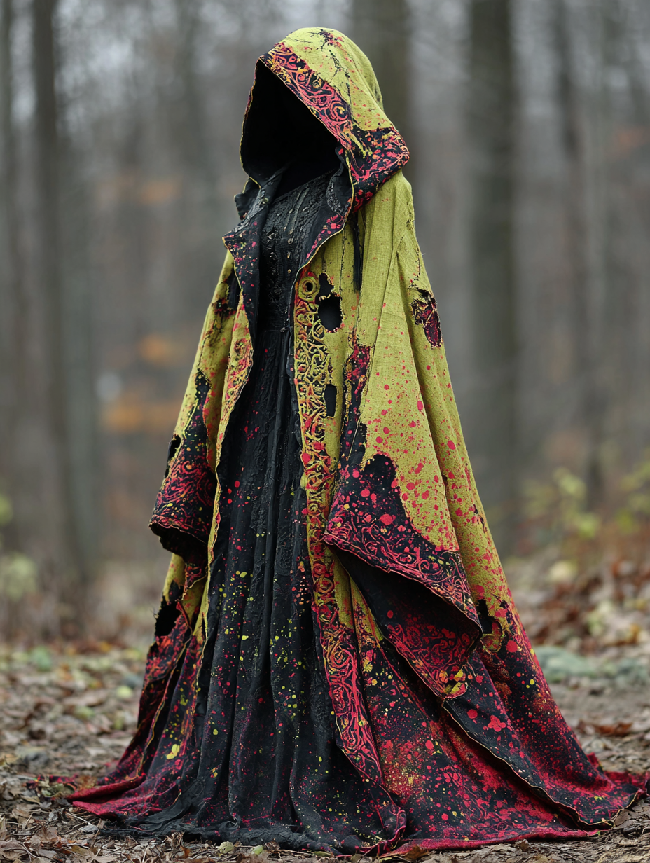 WOMEN'S HALLOWEEN PARTY CONTRAST COLOR LOOSE WIDE SLEEVE CAPE CAPE DRESS 6a62