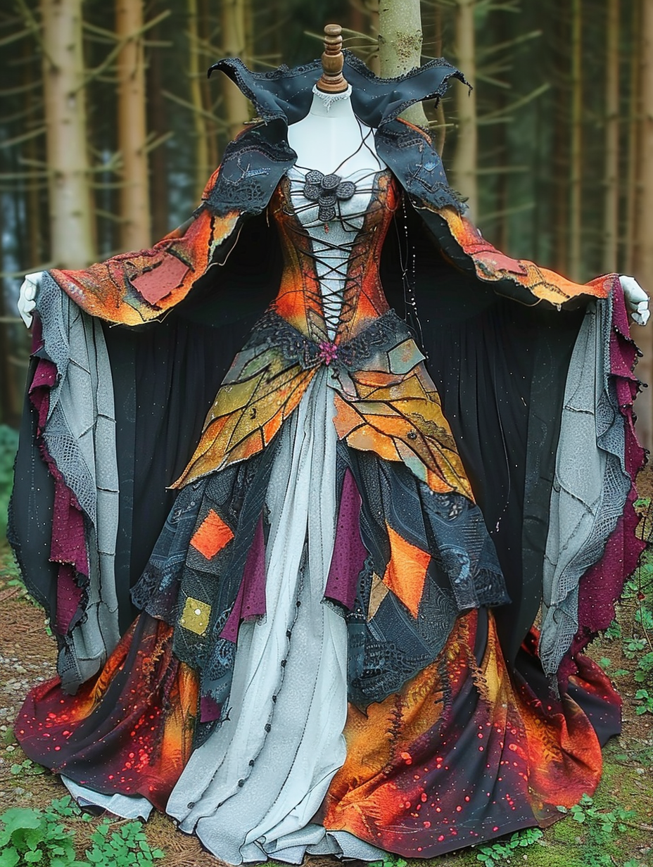 WOMEN'S HALLOWEEN PARTY CONTRAST COLOR LOOSE WIDE SLEEVE CAPE DRESS fd8f