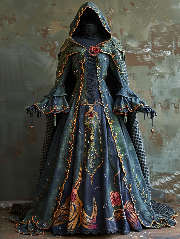 WOMEN'S HALLOWEEN PARTY CONTRAST COLOR LOOSE WIDE SLEEVE CAPE DRESS 2889
