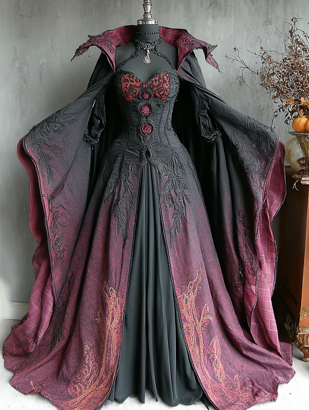 WOMEN'S HALLOWEEN PARTY CONTRAST COLOR LOOSE WIDE SLEEVE CAPE DRESS eab4