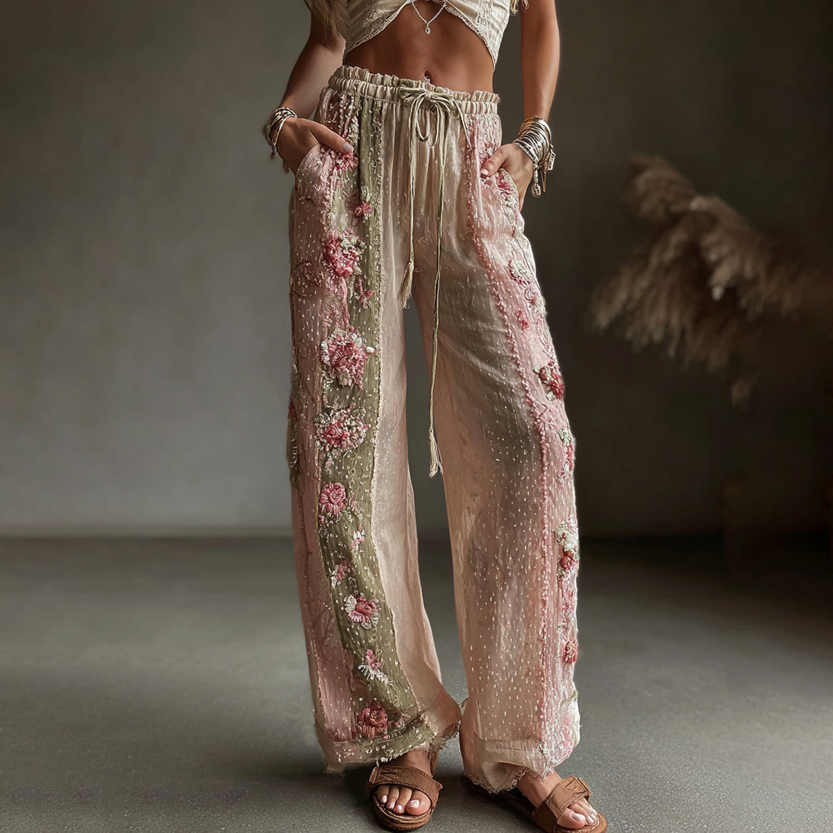Women's Retro Floral Art Casual Linen Pants